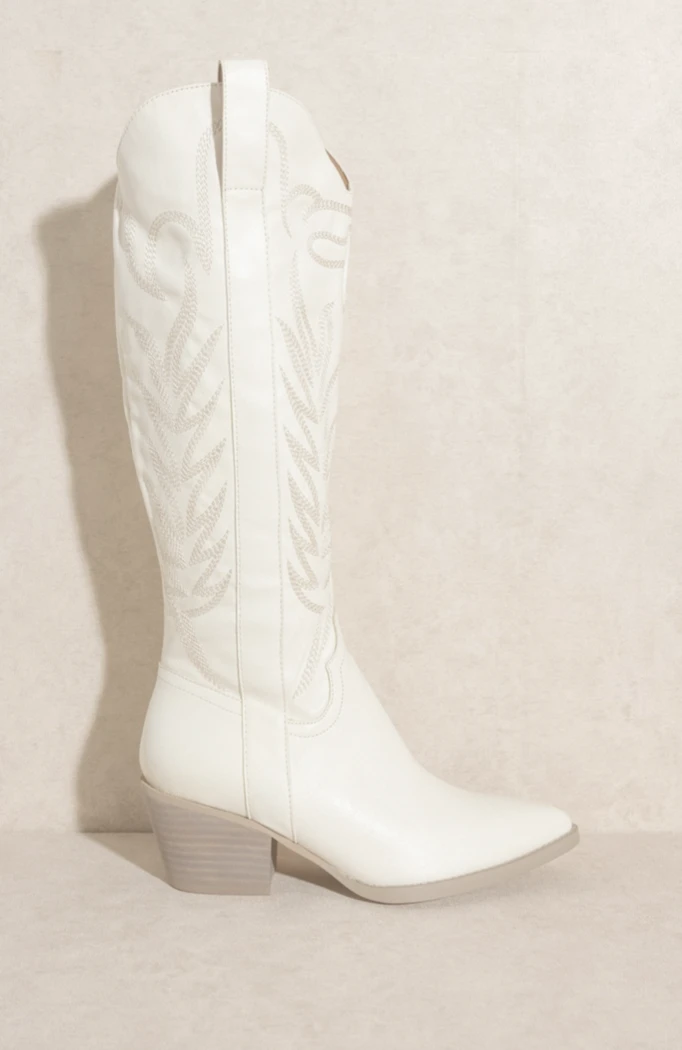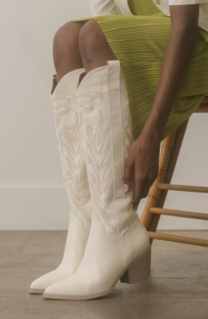 Tall western style cowboy boots. Giving us all the cowgirl Nashville vibes!