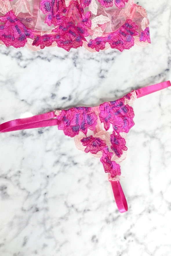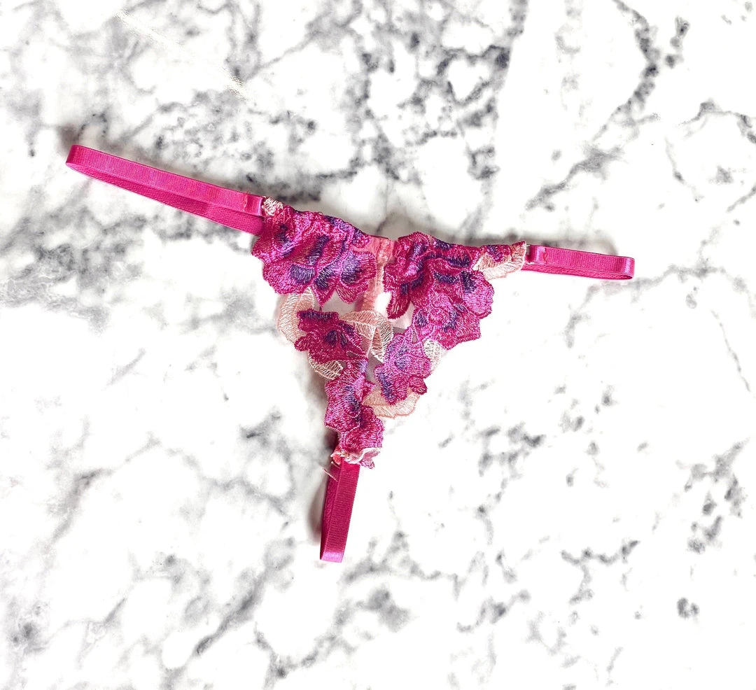 High end lace lingerie thong by Venne Lingerie. Pair it with our lace bra and garter belt. Lingerie returns must be sent back with red tag in tact.Â