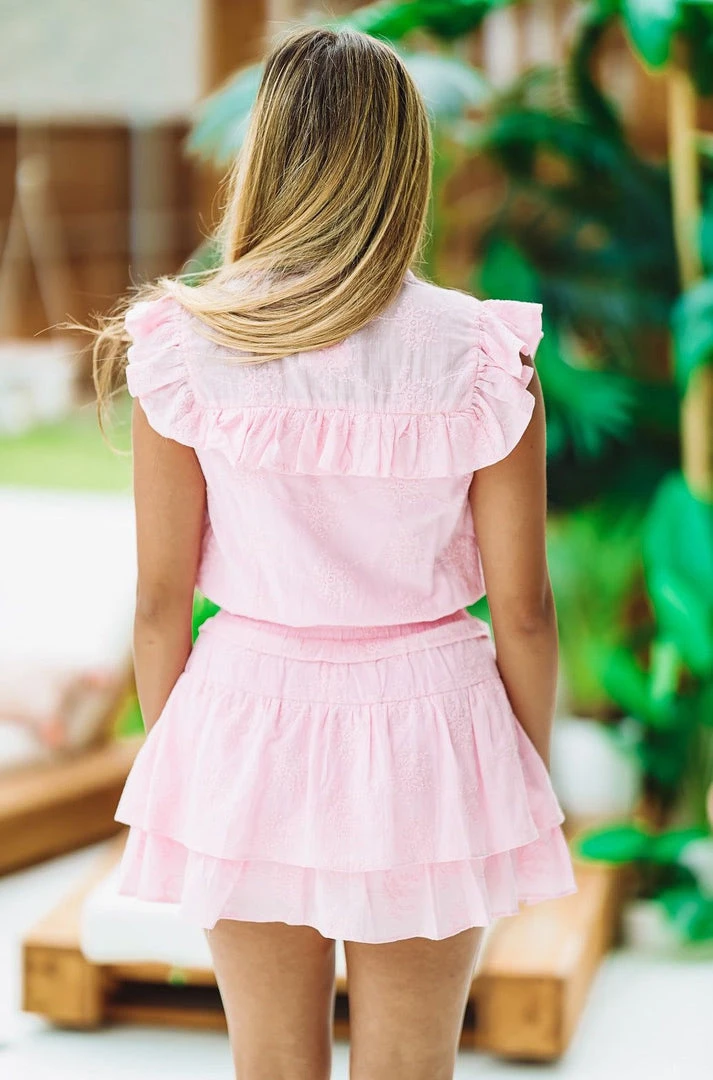 Feeling a little fancy and like it’s meant to be in this pink mini dress! We are in LOVE with this designer dupe. It’s dreamy. It’s pink. It’s perfect. Â It is a 100% cotton dress with ruffles, an elastic band at the waist and lined with shorts.
