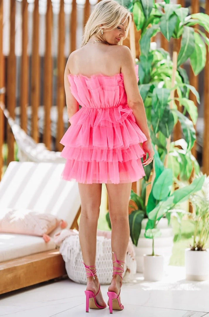 Twirl me around in tulle and take me somewhere fancy! If this pink tulle dress could talk, we imagine it would say just that. Whether you have an event next week or in October, grab this now and don’t look back. It’s strapless, zips up the back, has all the fluff up top and down below with layered tulle hemlines and a silky slip liner. Take the tulle twirling on the dance floor in this pink tulle mini dress.